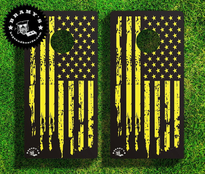 Our cornhole boards are made with the finest Baltic Birch or Birch wood, sturdy materials, 3/4 inch tops, and are regulation size. The boards have legs that fold in for easy storage and built-in handles. Our flag designs are popular and most are in-stock daily. Order yours today!